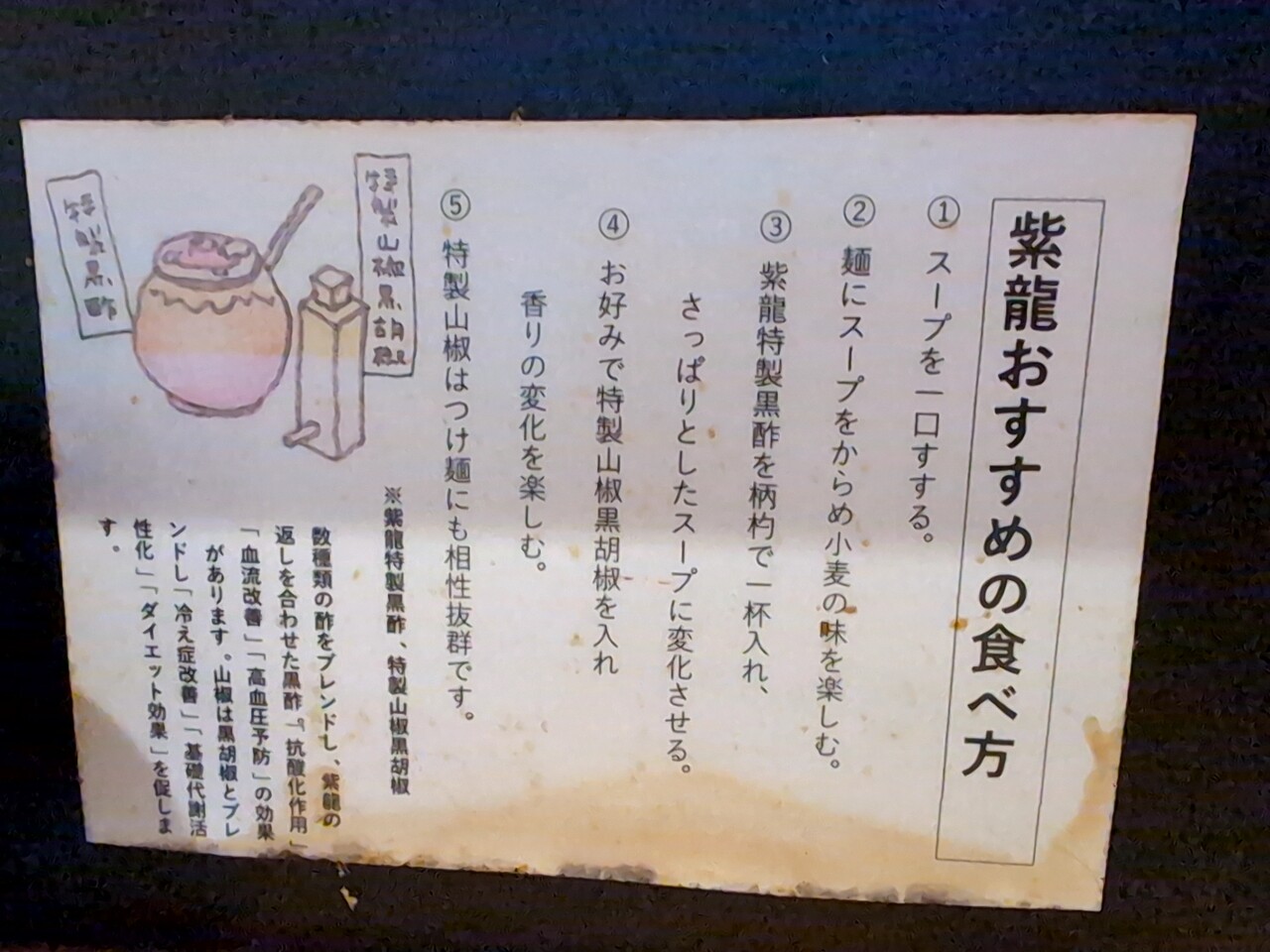 「紫龍おすすめの食べ方」の掲示あり。