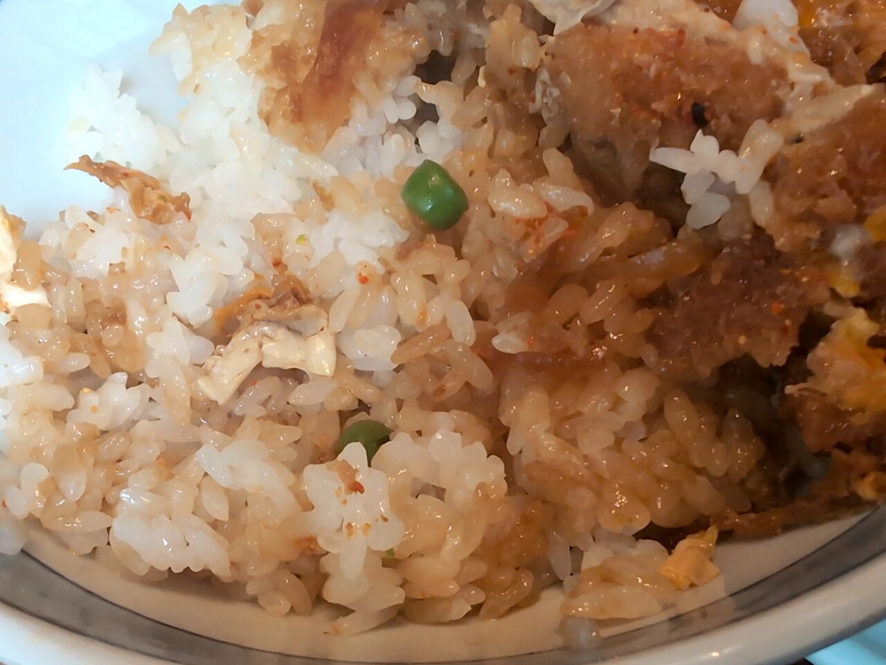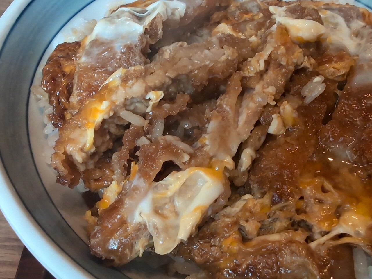 かつ丼の肉は薄く、濃い味でしょっぱめだが そんな文句は言えない。