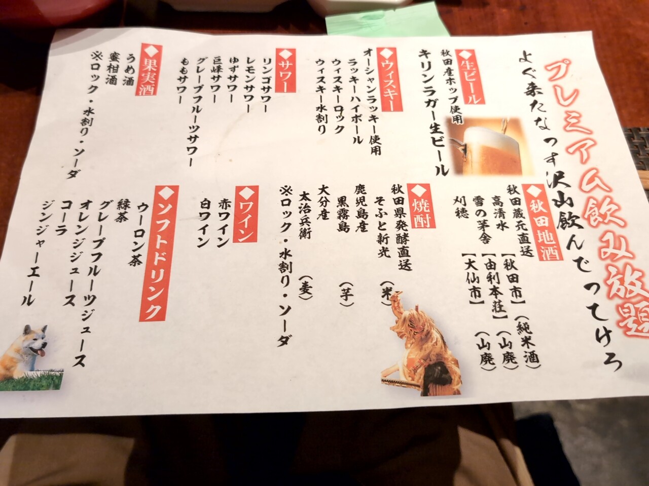 五反田 秋田料理 居酒屋わったりぼうず 飲み放題コース、このお値段でこの内容飲み放題はすこぶる良心的!