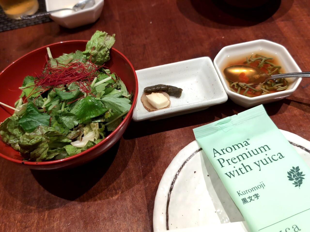 ■ 秋田芹の美人サラダ、クリームチーズいぶりがっこ、じゅんさい