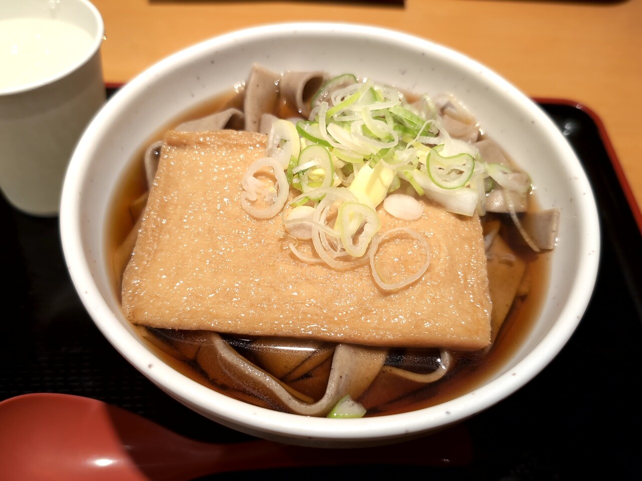 注文の品:きつねそば 極幅そば選択 大盛無料!