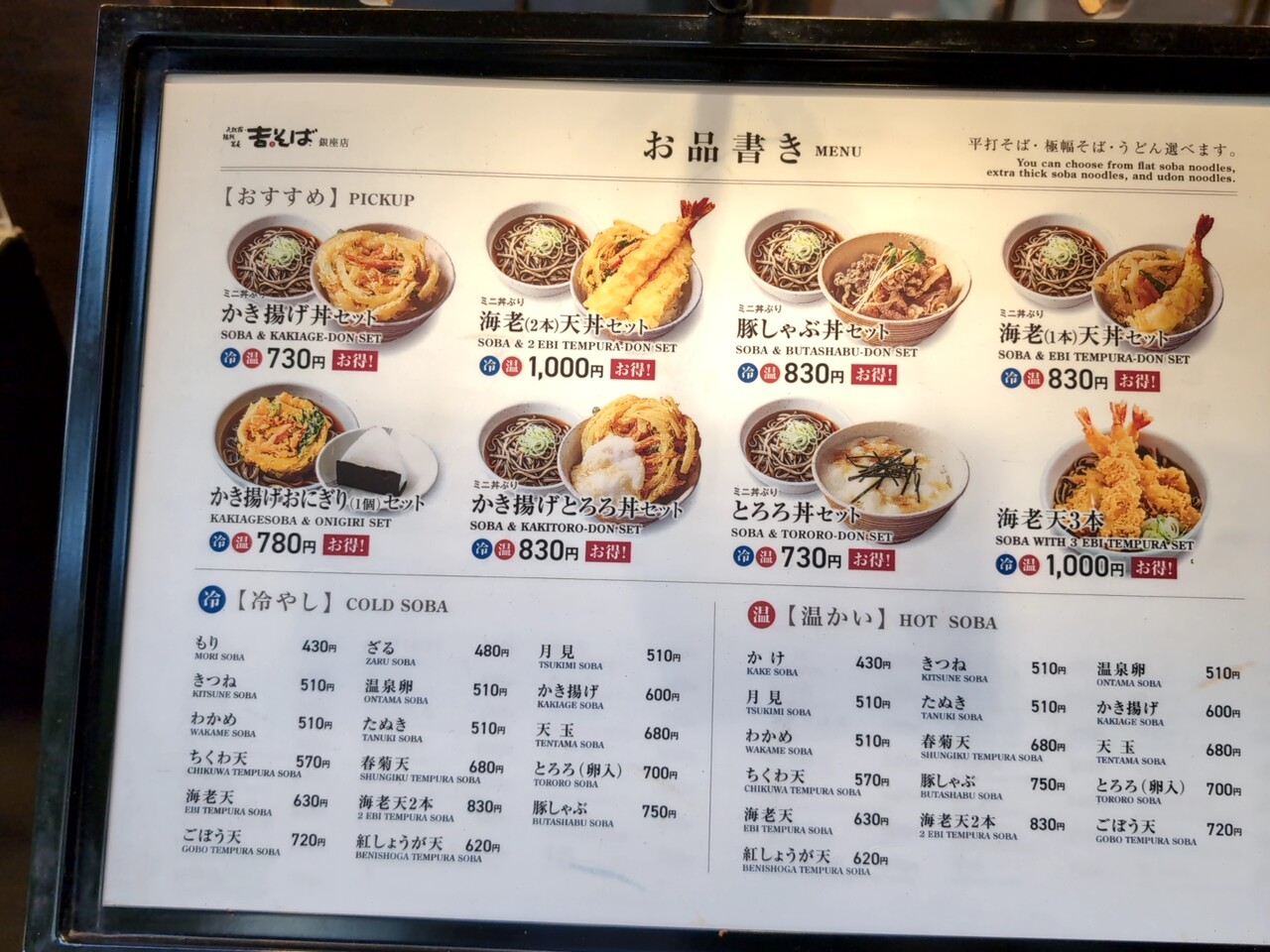 久々に吉そば 銀座本店に行ったら蕎麦がリニューアルし大盛無料の掲示。