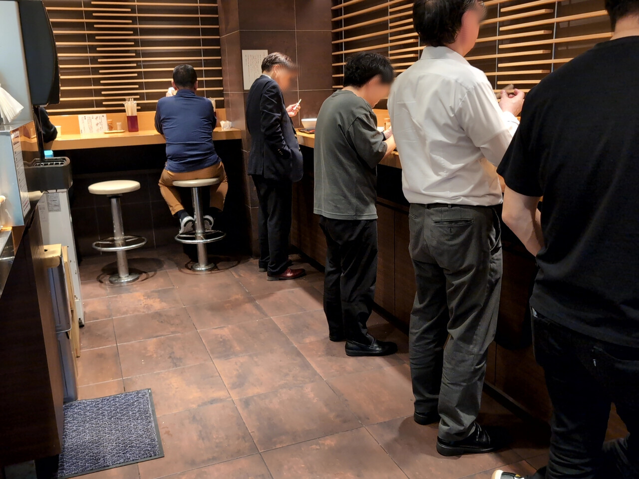 立ち食いカウンター10ぐらい、奥に座り席4ほどで常時混んでいる。