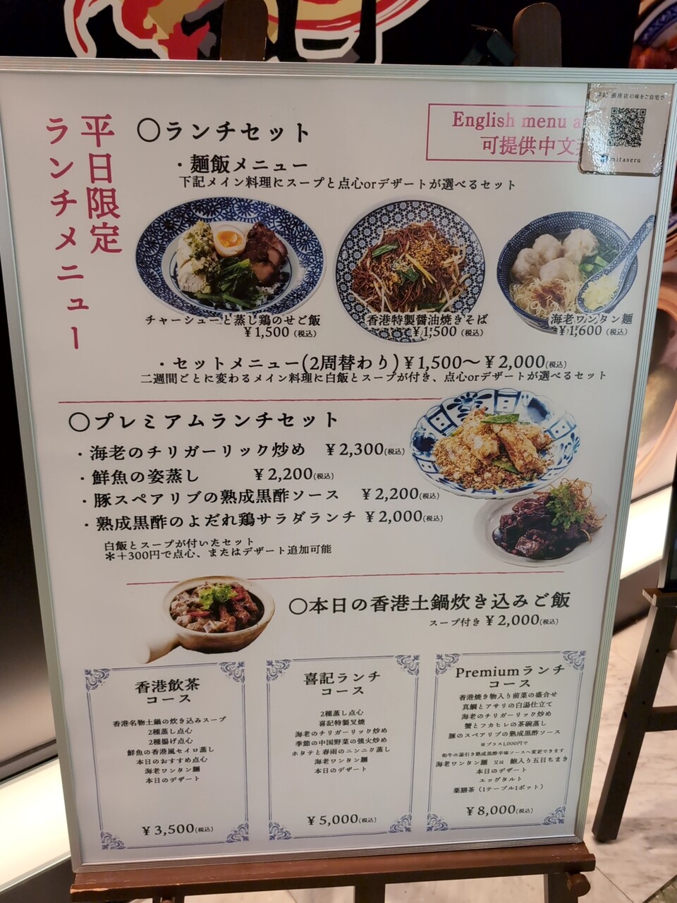 注文の品:チャーシュウと蒸し鶏のせご飯(1500円)、海老ワンタン麺(1600円)