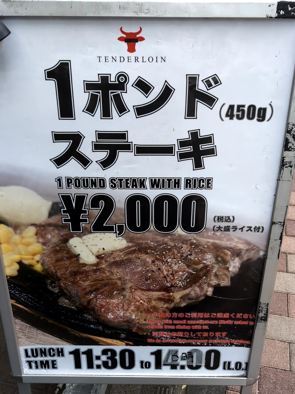 テンダーロイン TENDERLOIN ランチ1ポンドステーキ 1pondoステーキ 1poundsteak