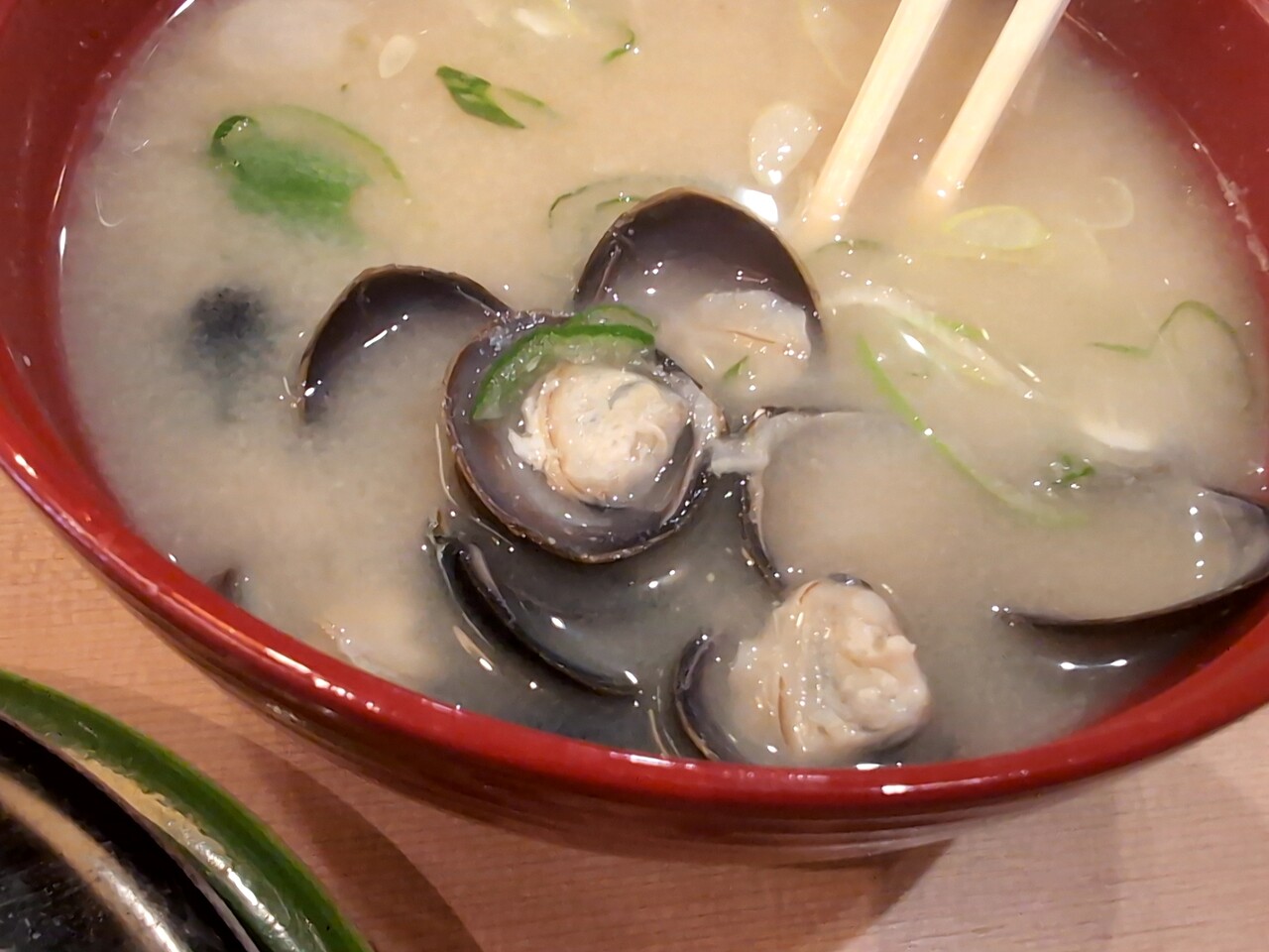 白味噌ベースで大きなシジミが大量、美味いです!