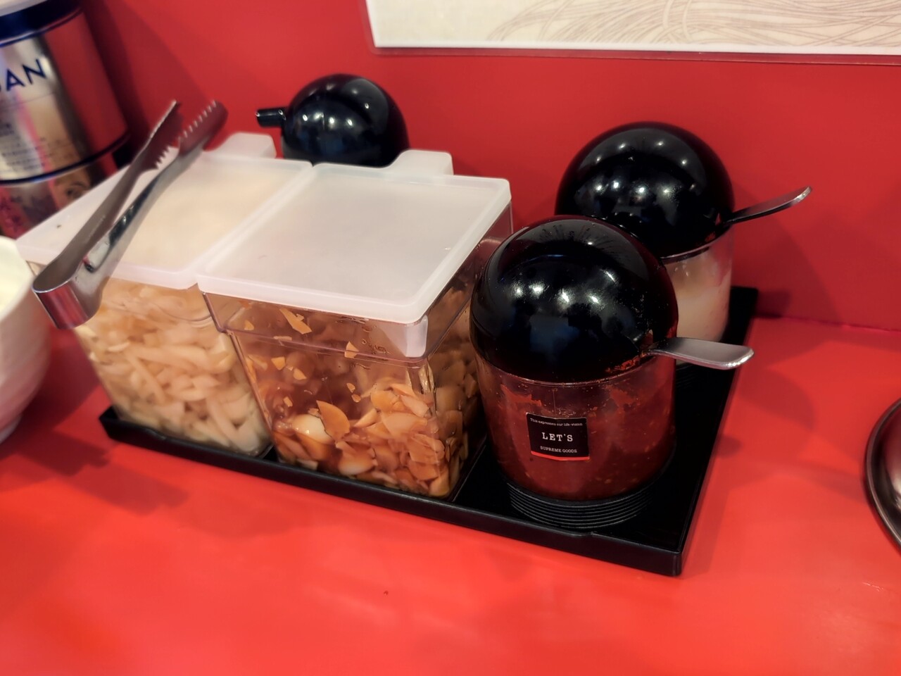 卓上アイテムに、ニンニク、生姜、豆板醤あるのが嬉しい。