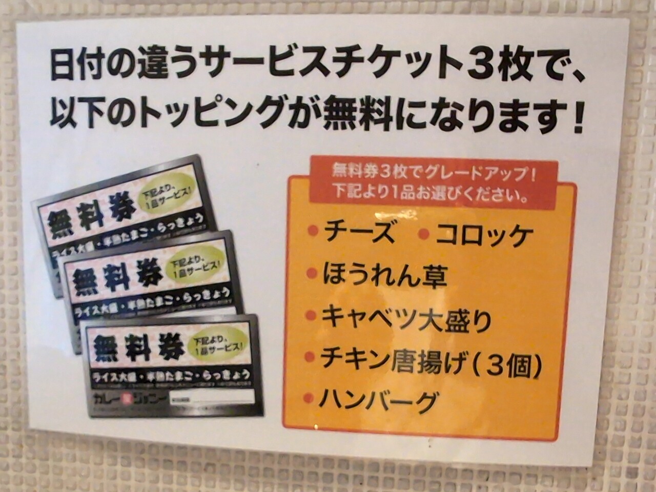 3枚でトッピングがサービスとなる。