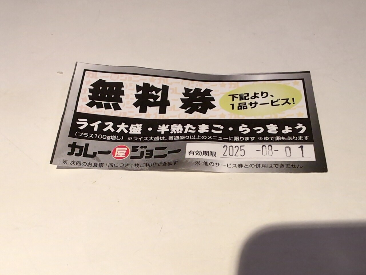 サービス無料券もらえる。