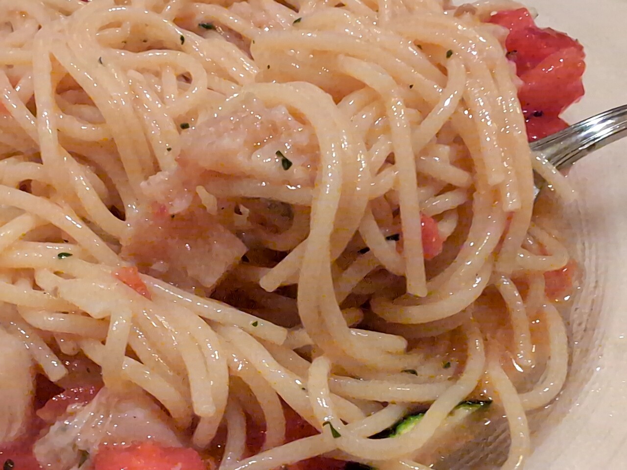 冷製だが生パスタなのでパキパキしてなくモッチリ感。