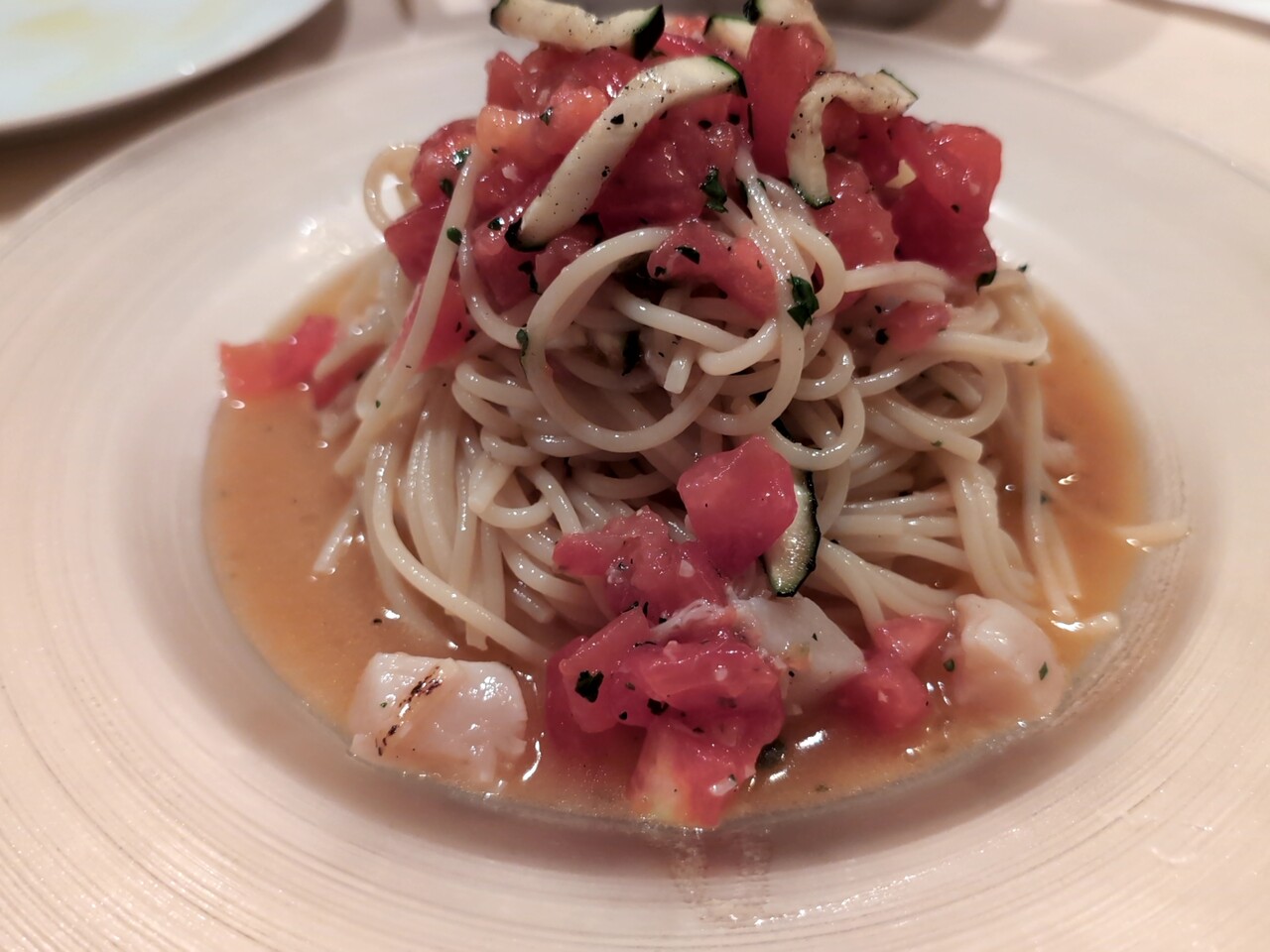 こんときは炙りホタテとフレッシュトマト、ズッキーニ