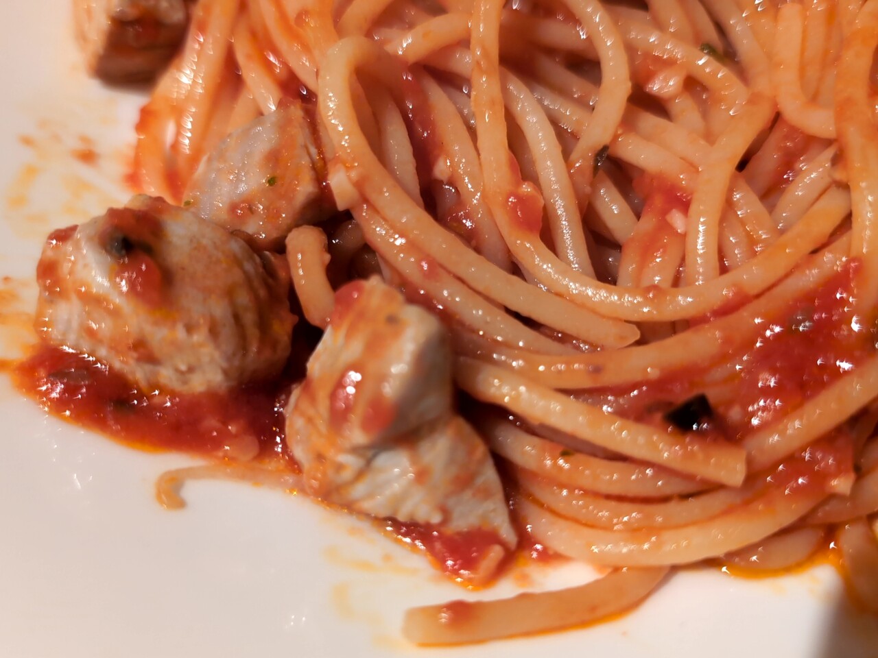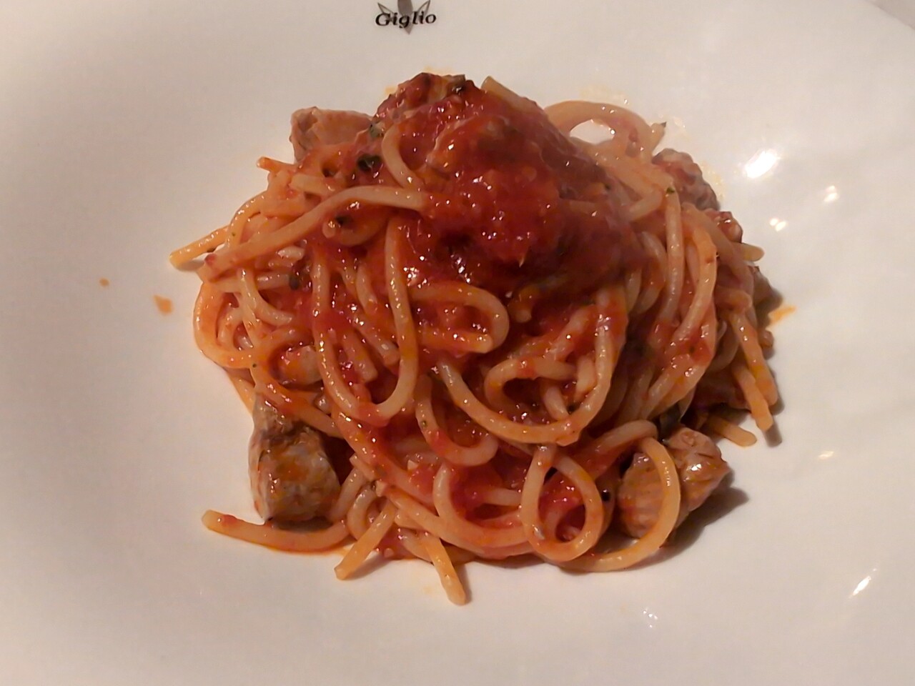 ハーブが効いたトマトソースにもっちり太麺パスタ