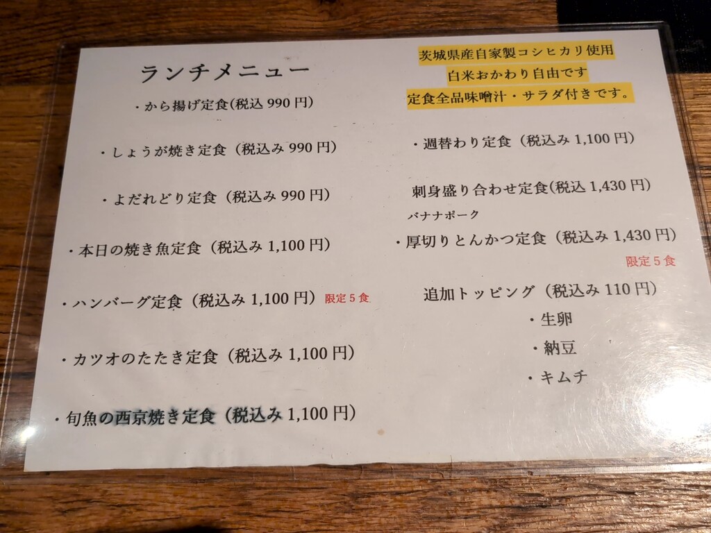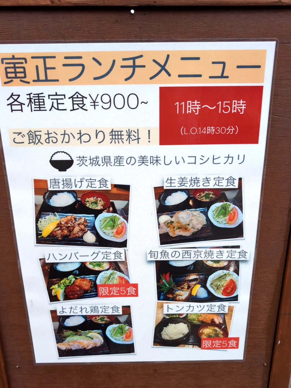 店頭掲示のランチ900円、ご飯おかわり無料 に魅かれる。