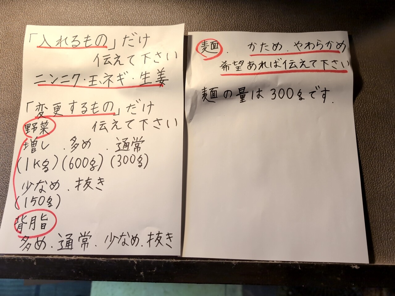 +オプション:野菜多め、ニンニク・生姜・タマネギ