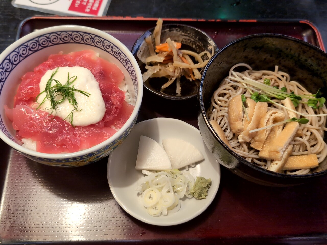 注文の品:ランチハーフセット(鮪山掛け丼、きつね蕎麦 冷やし)