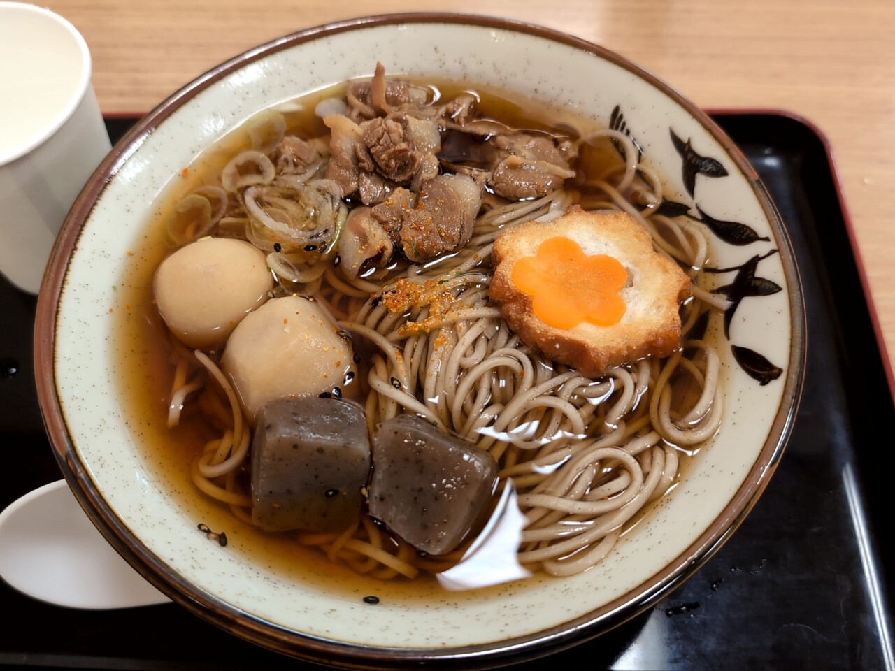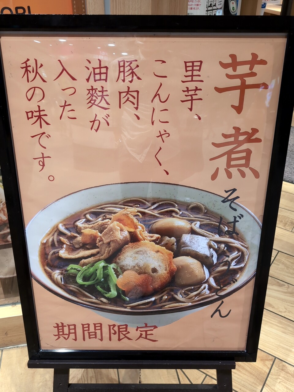 JR仙台駅改札内 立ち食いそば「立ちそば処 杜(もり)」の期間限定 芋煮そばでございます。