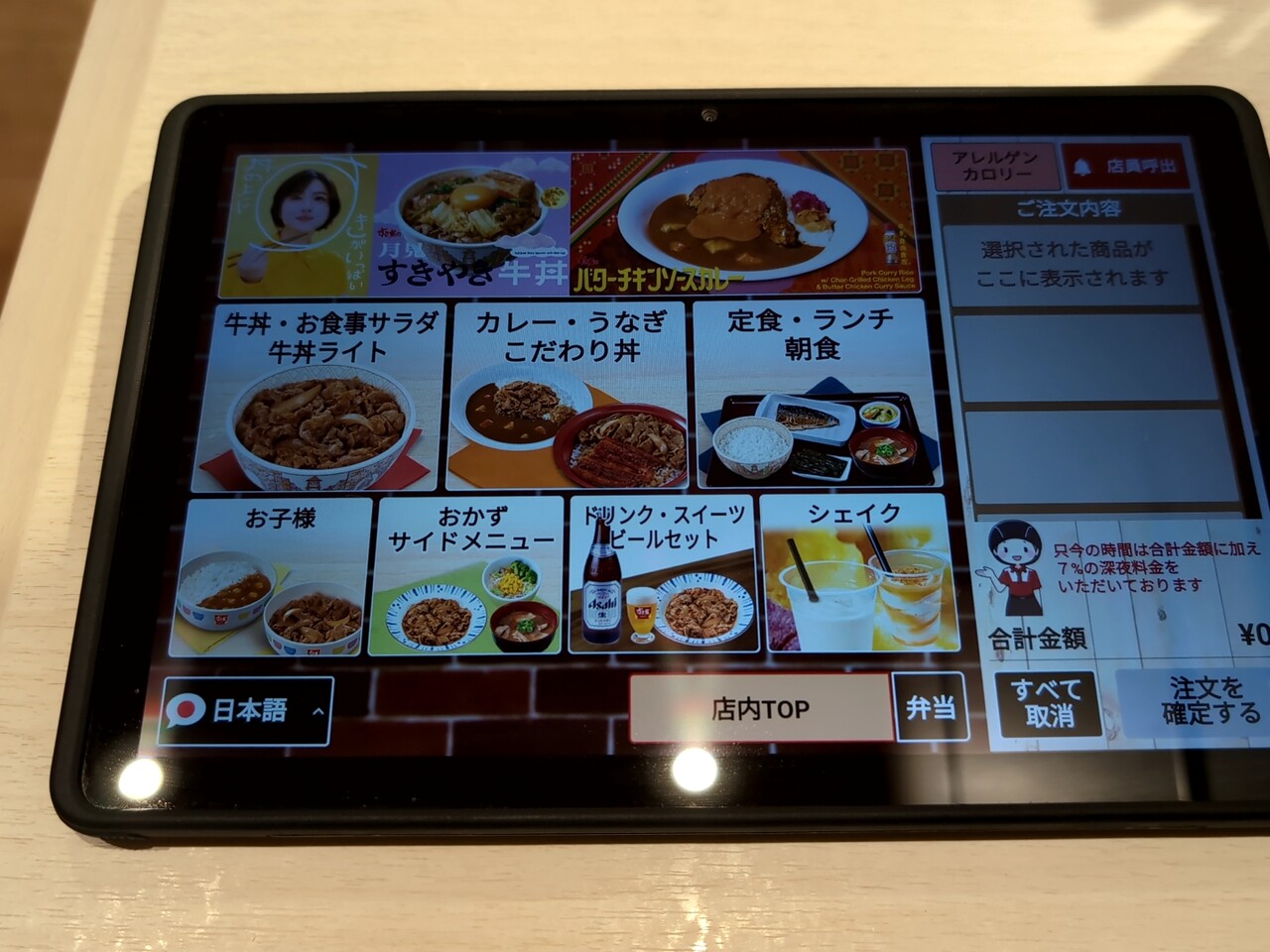 注文の品:季節商品「月見すきやき牛丼」750円 + 豚汁240円 +深夜料金69円