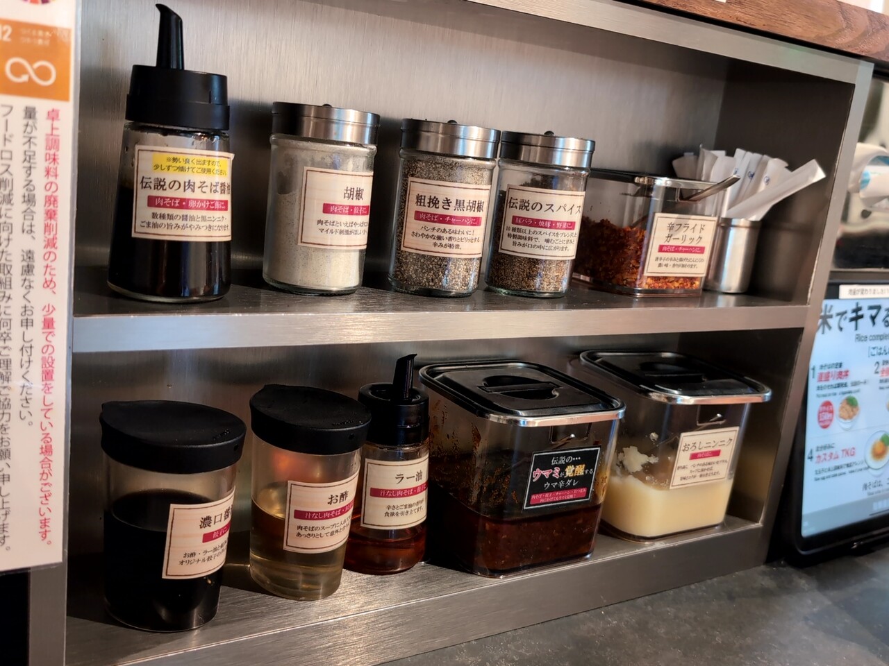 薬味が豊富にライナップされている。