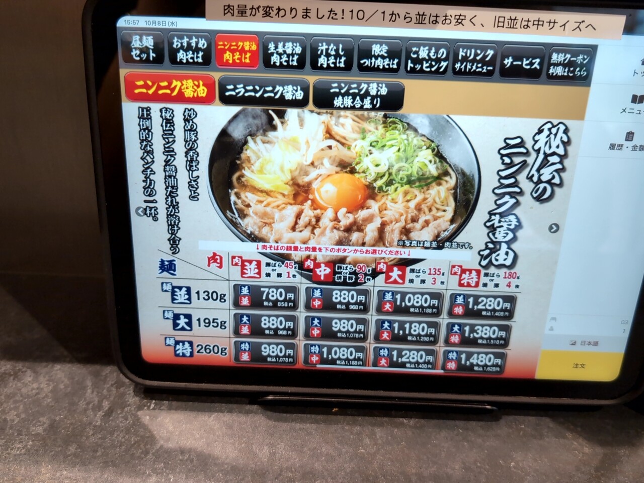 お茶ノ水 伝説の肉そば屋「伝説のニンニク醤油」でございます。