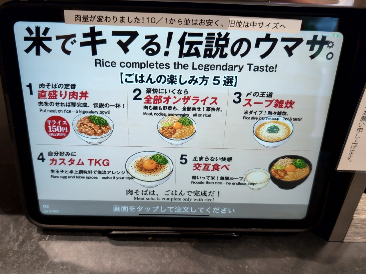 オーダーは卓上のタッチパネルのシステム。