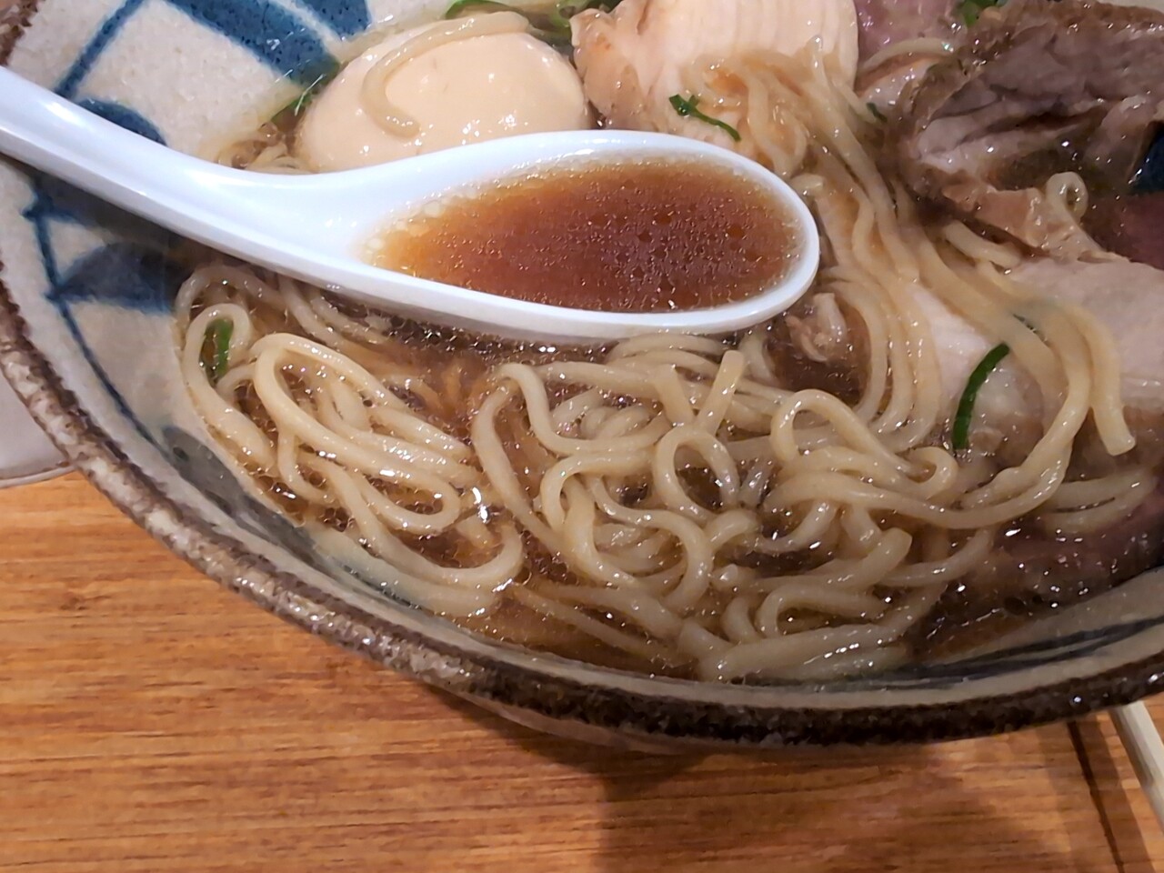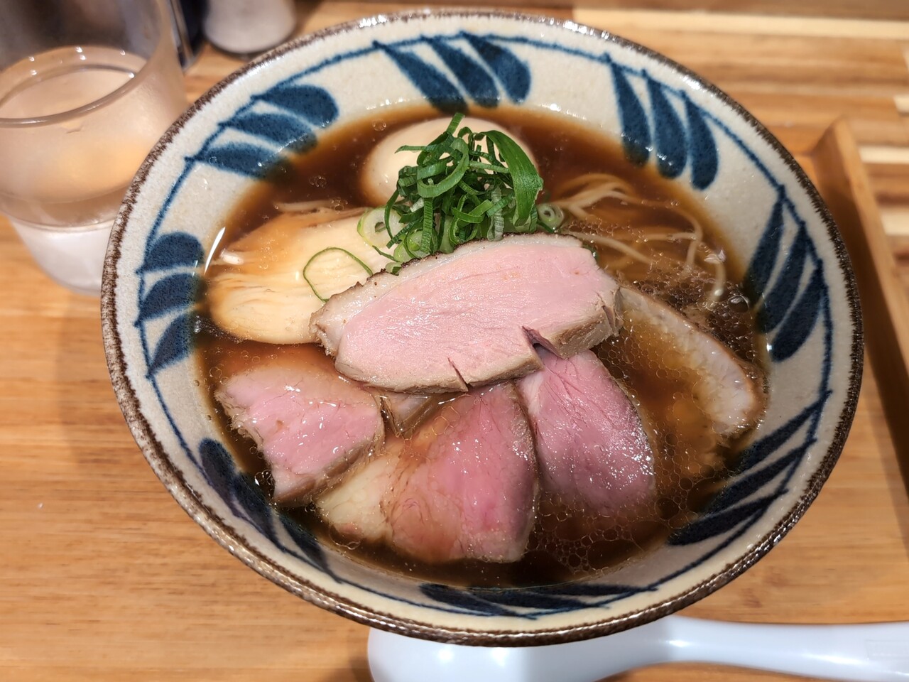 特製には、煮玉子、鴨肉、鶏、低温調理の豚チャーシュー3種が乗る。