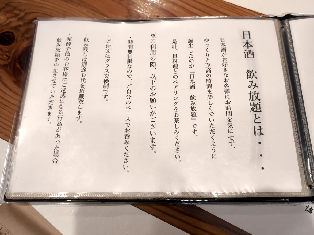 貝料理 梵厨(ボンズ)日本酒飲み放題コース、