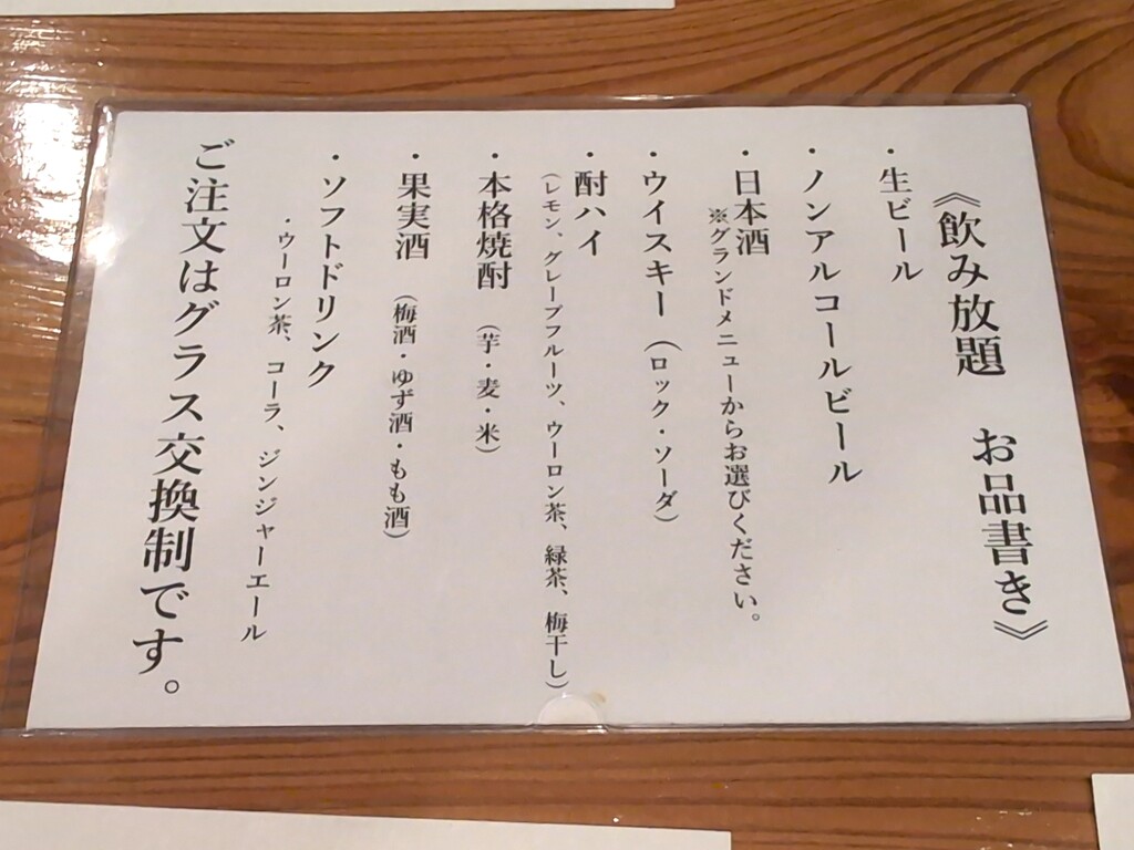 先に呑み放題メニュー等ををペタペタ貼っときます。