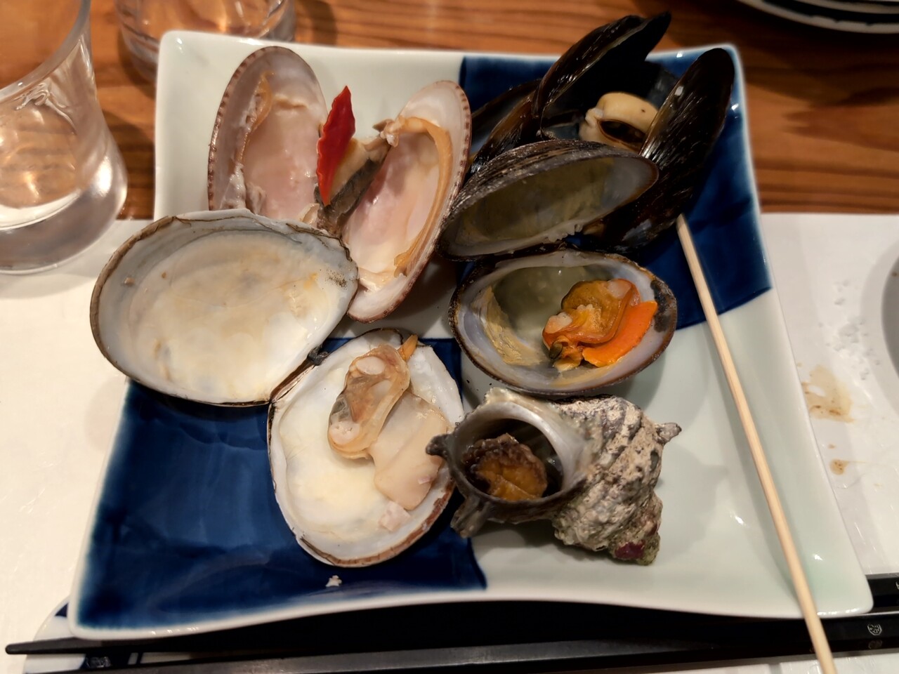 ハマグリ、サザエ、ムール貝等々。