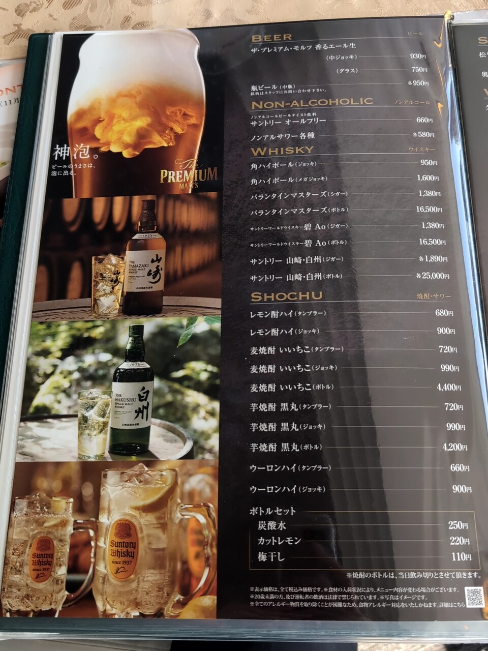 [ 若洲ゴルフリンクス レストランメニュー ]