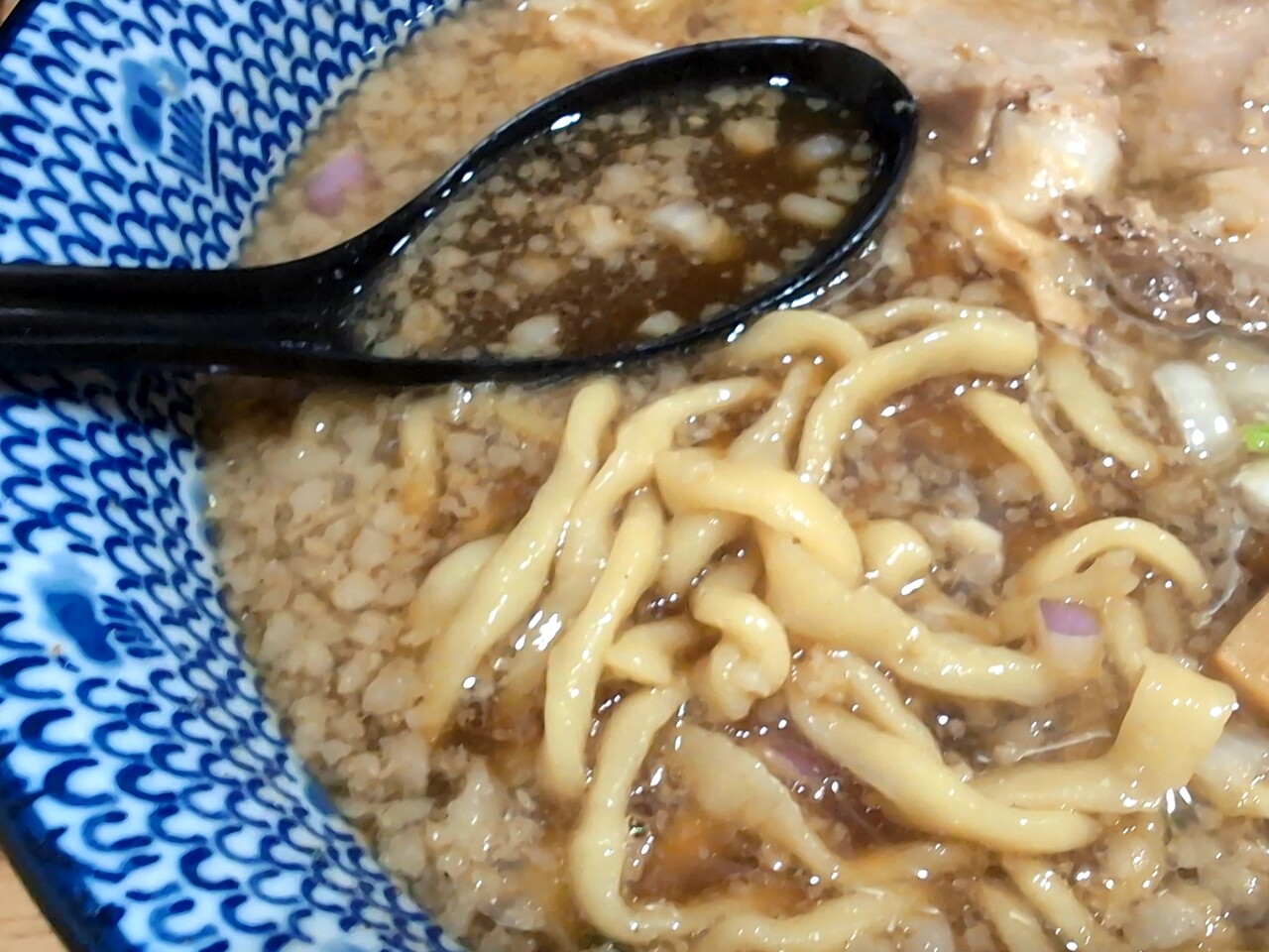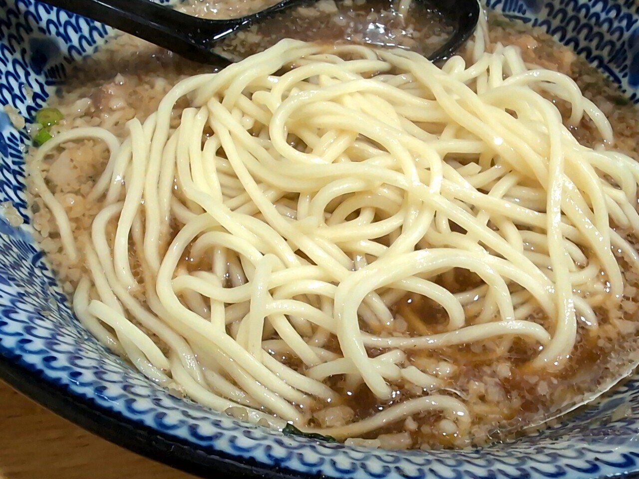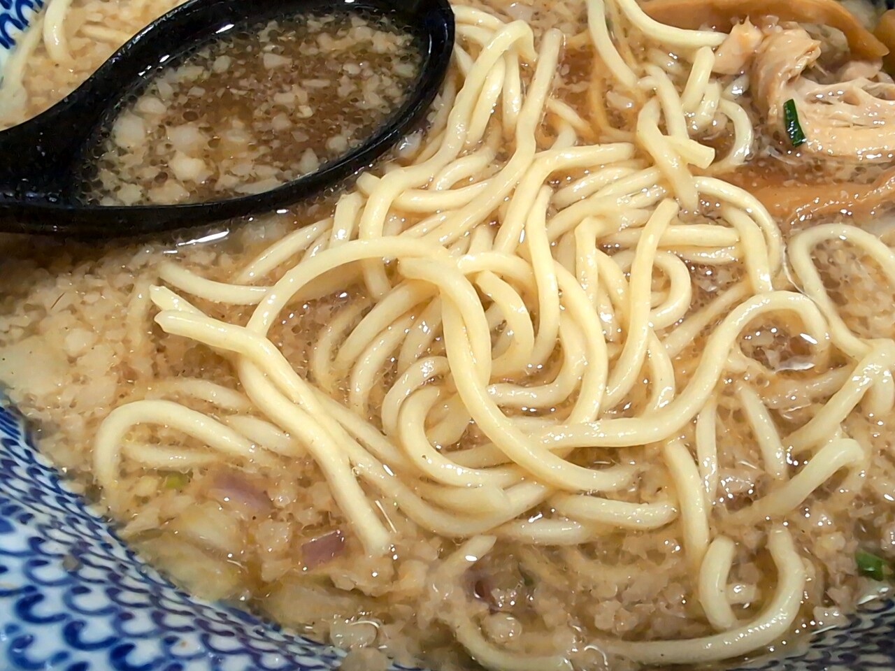 替玉の麺は初期のとは違い、低加水と普通の中間ぐらい。