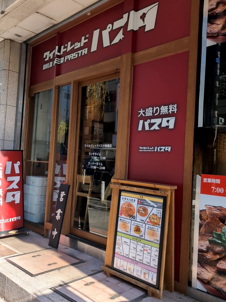 ニュー新橋ビル1F、ワイルドレッドパスタ新橋店でございます。