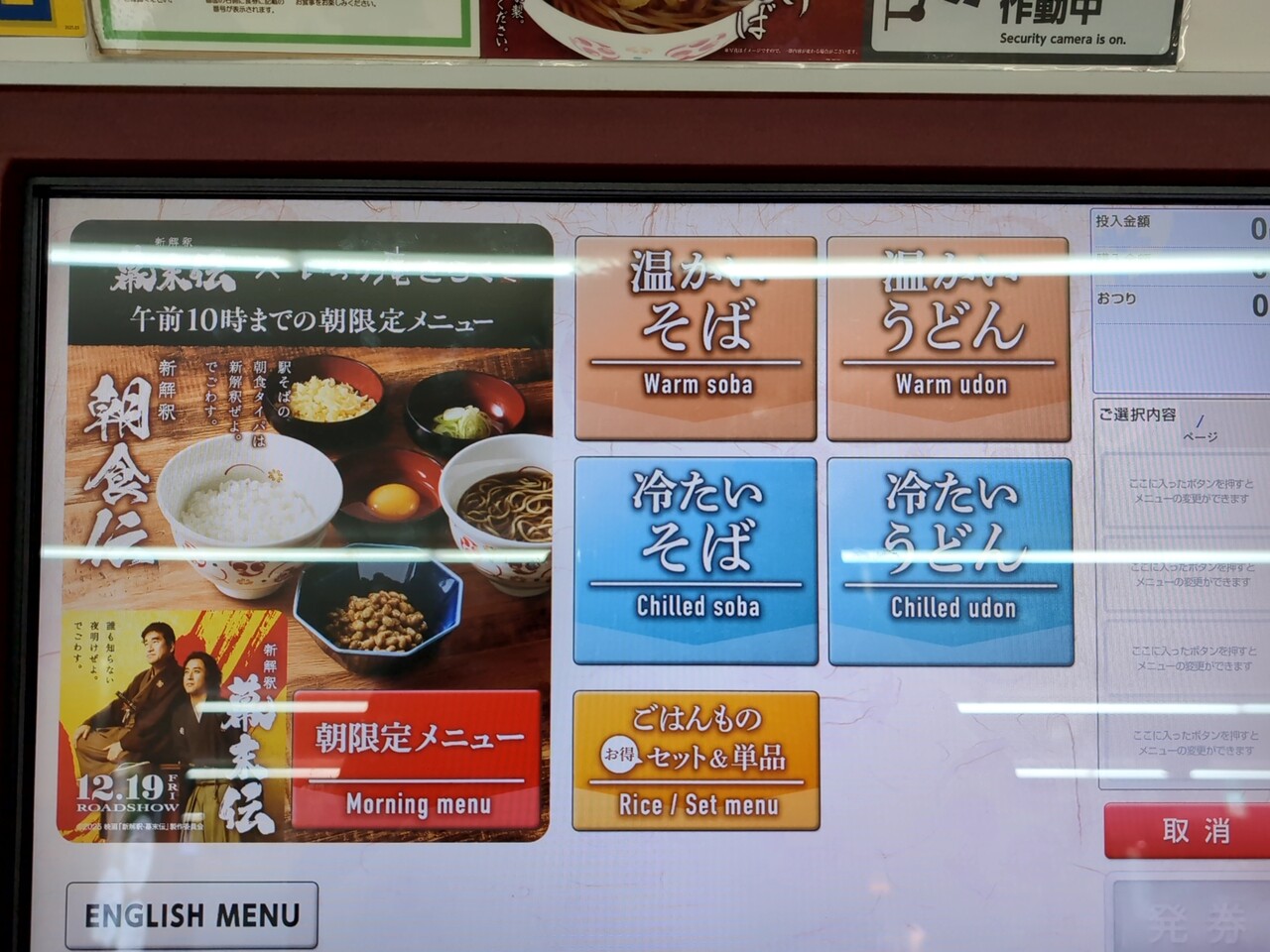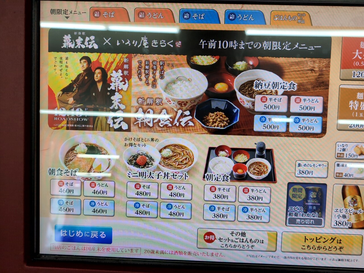 JR新木場駅改札内 いろり庵きらくの「朝定食半そば」