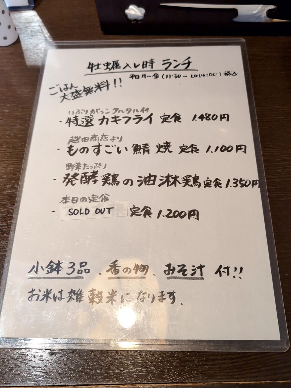 ニュー新橋ビル4F、牡蠣入レ時(かきいれどき)のランチでございます。